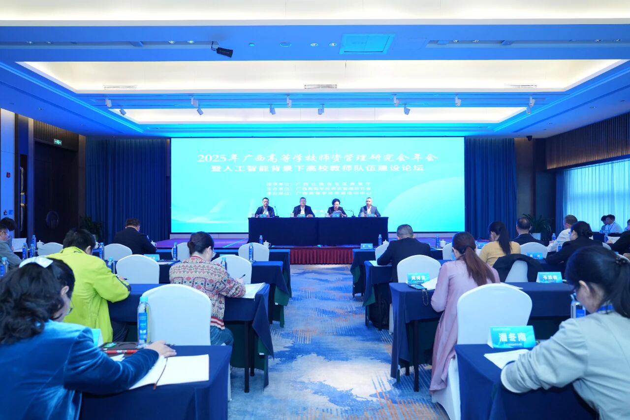 11月7日,2025年广西高等学校师资管理研究会年会暨人工智能背景下高校教师队伍建设论坛在南宁隆重开幕。全区80余所高校的120余名广西高等学校师资管理研究会理事及部分高校分管人事、教师发展的负责人参会。我校作为会员单位选派人事处谢晓兰老师参加了此次会议。